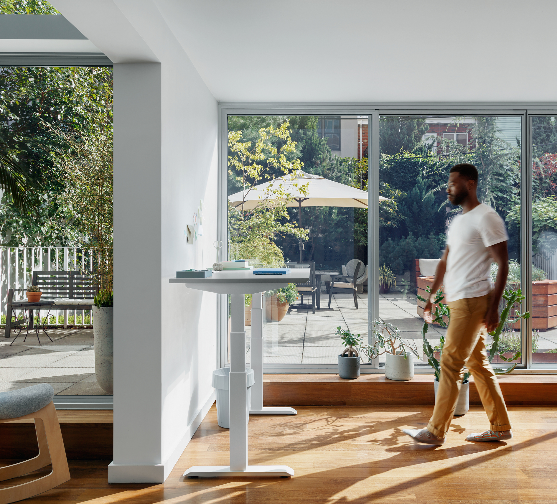 A height-adjustable desk gives space to walk, pace, or step through meetings without breaking concentration. Active seating and flexible accessories keep the body engaged and the mind clear, turning restless energy into steady flow. Whether it’s back-to-back calls or heads-down work, this workspace keeps every step feeling effortless.