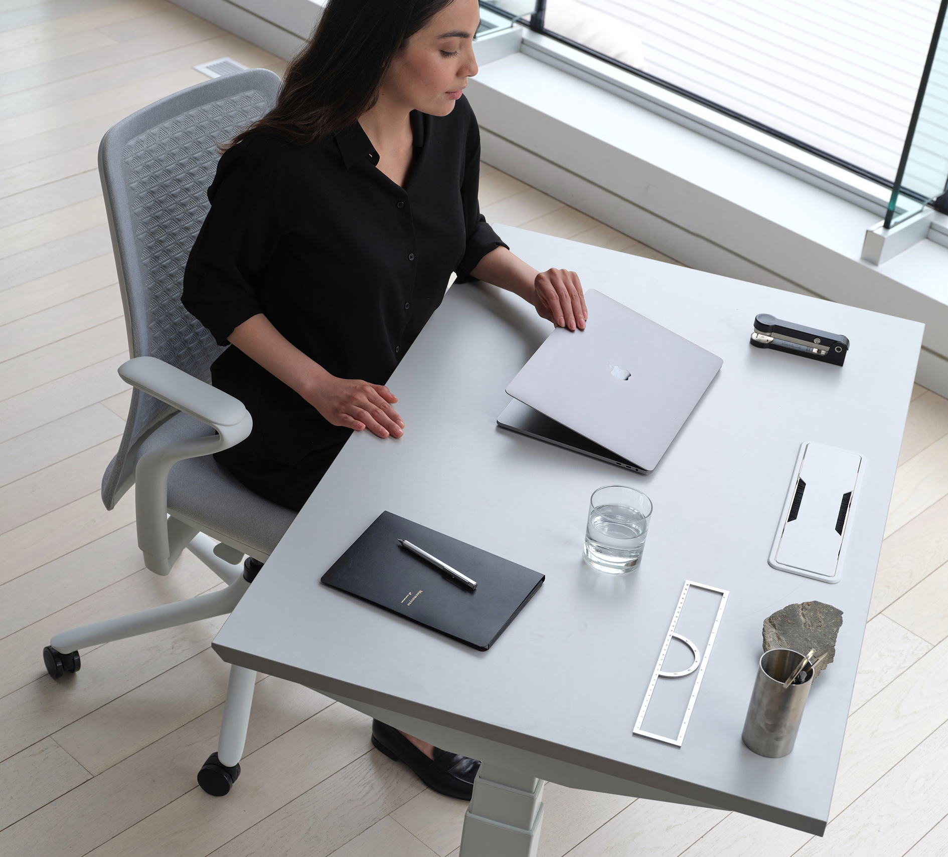 Design-forward staples and smart organizational accessories create a workspace that keeps everything in its place without sacrificing style. Sleek storage, thoughtful surfaces, and stylish ergonomic upgrades help make the workday feel more composed. Even when life’s a scramble, the space stays steady.