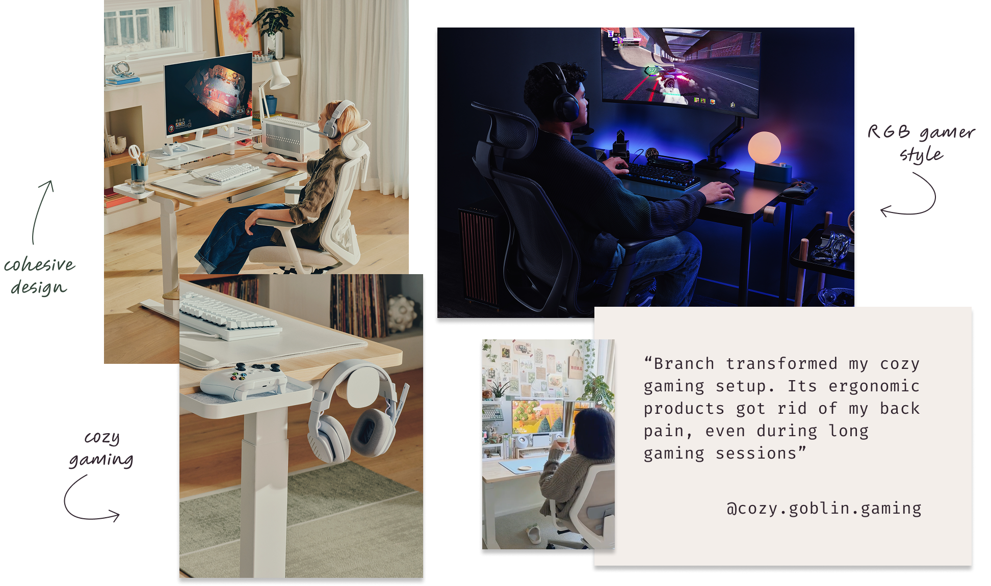 Join hundreds of gamers transforming their space with ergonomic and beautiful furniture from Branch.