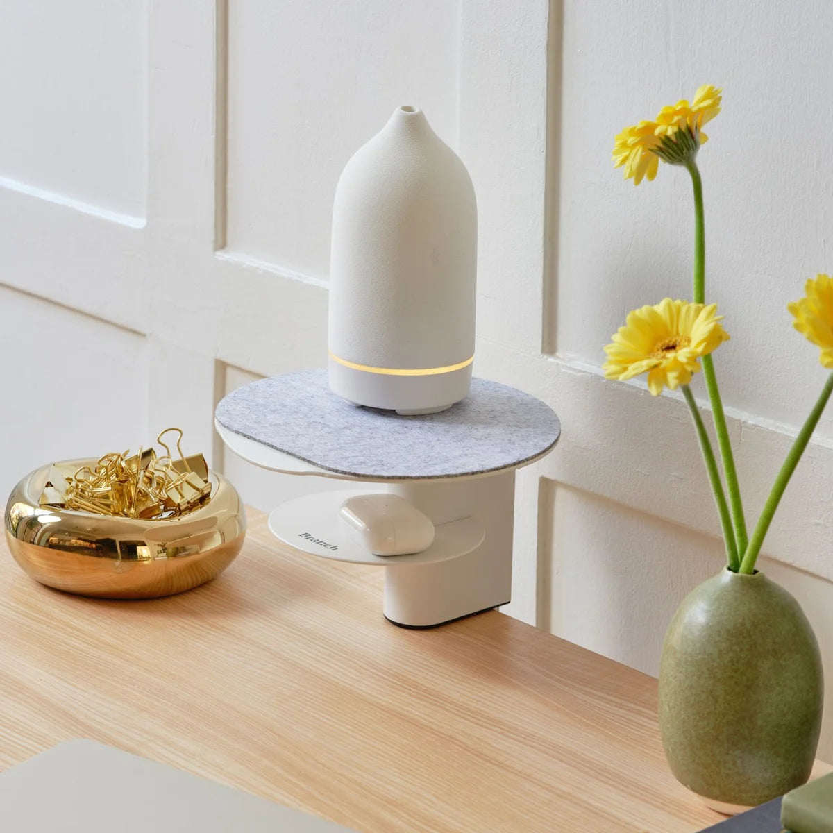 The Branch Desk Perch is a versatile elevation solution that works with most desks. While perfect for slim monitors and laptops, it's also an ideal platform for desk lamps, charging stations, speakers, or any accessories you want to raise to a more accessible height. Its thoughtful design maintains a minimal footprint while maximizing the functionality of your vertical workspace.