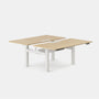 Timeless design is complemented by robust construction in the Double Standing Desk, featuring two separate tabletops on a fully-integrated base. With dual motors and three-stage lift columns, transitioning between sitting and standing is effortless, encouraging you and your team to stay active throughout the day. The desk also includes four memory presets at each tabletop, making it easy to set and save preferred heights for multiple teammates. Additionally, its central power console can be connected to other units, allowing them to be chained together for even more workspace.