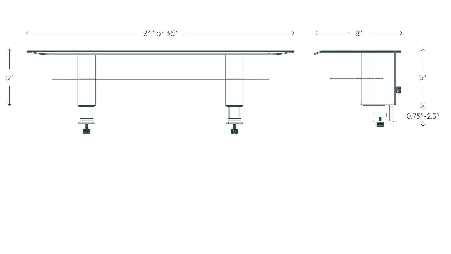 • 5.5” in height, top tier 24” (S) or 36” (L), second tier 20” (S) or 30” (L)