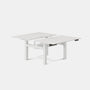 Timeless design is complemented by robust construction in the Double Standing Desk, featuring two separate tabletops on a fully-integrated base. With dual motors and three-stage lift columns, transitioning between sitting and standing is effortless, encouraging you and your team to stay active throughout the day. The desk also includes four memory presets at each tabletop, making it easy to set and save preferred heights for multiple teammates. Additionally, its central power console can be connected to other units, allowing them to be chained together for even more workspace.